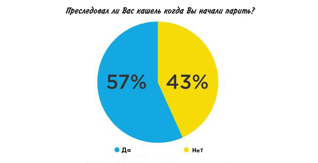 Как оказалось, эта проблема достаточно распространена. Согласно исследованию ecigaretteddirect, которые опросили более 600 человек, такая проблема настигает почти 57 % начинающих вейперов.
