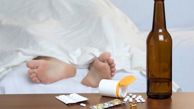 Прием алкоголя со снотворными препаратами ведет к появлению стойкой зависимости. Синдром абстиненции, возникающий у человека при завершении приема лекарств, сопровождается нарушениями в работе ЦНС, психозами, галлюцинациями.